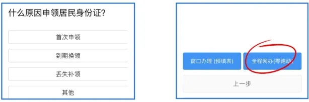 2.选择办理原因,选择全程网办;