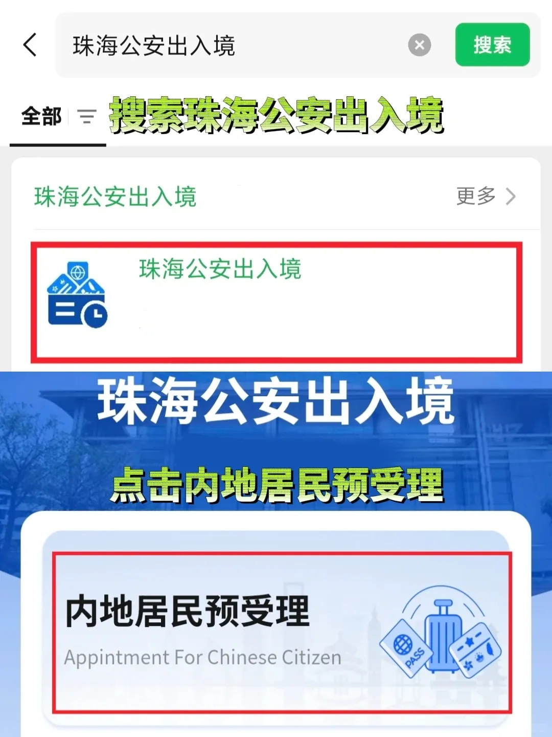 搜索【珠海公安出入境】,点击内地居民预受理;